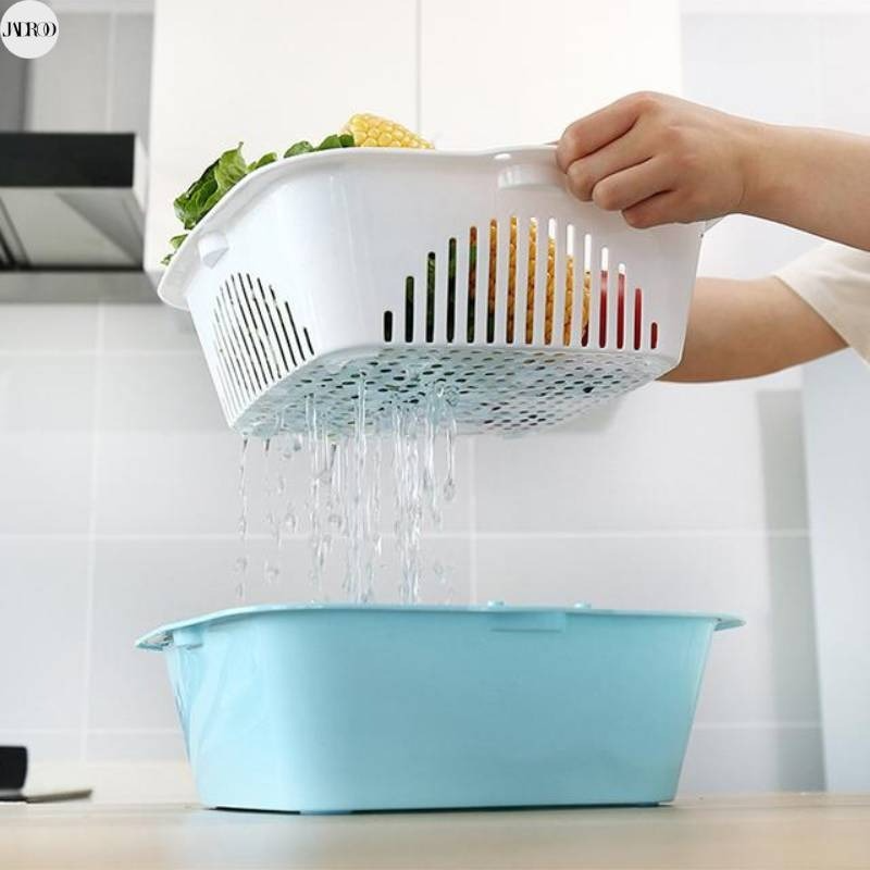 Double-Layer Plastic Draining Basket | Stackable & Versatile | Multi-Colour. This double-layer plastic draining basket is a practical kitchen essential for rinsing, draining, and even drying dishes. With its flexible and durable design, it's perfect for everyday use and space-saving storage.
