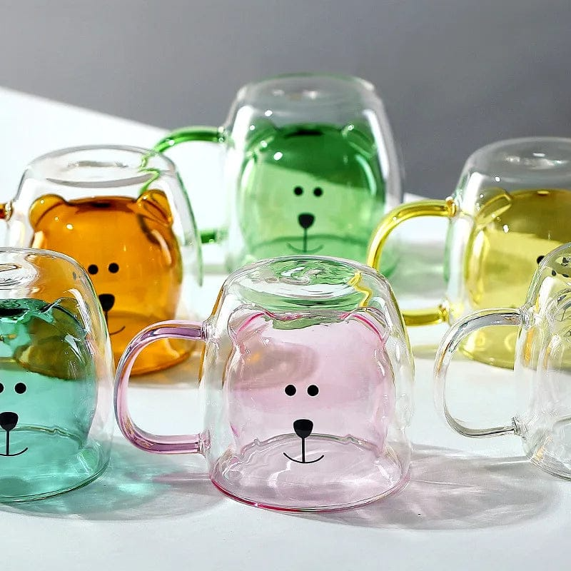 • Shocking your lover: The insulated double wall glass bear mugs in 4 different colors, transparent,pink,green and brown, which is a surprise gift for your lover, friends, family members, co-workers on Christmas, Valentines Day, Weddings or as a birthday present, they will be happy after receiving your well prepared present.