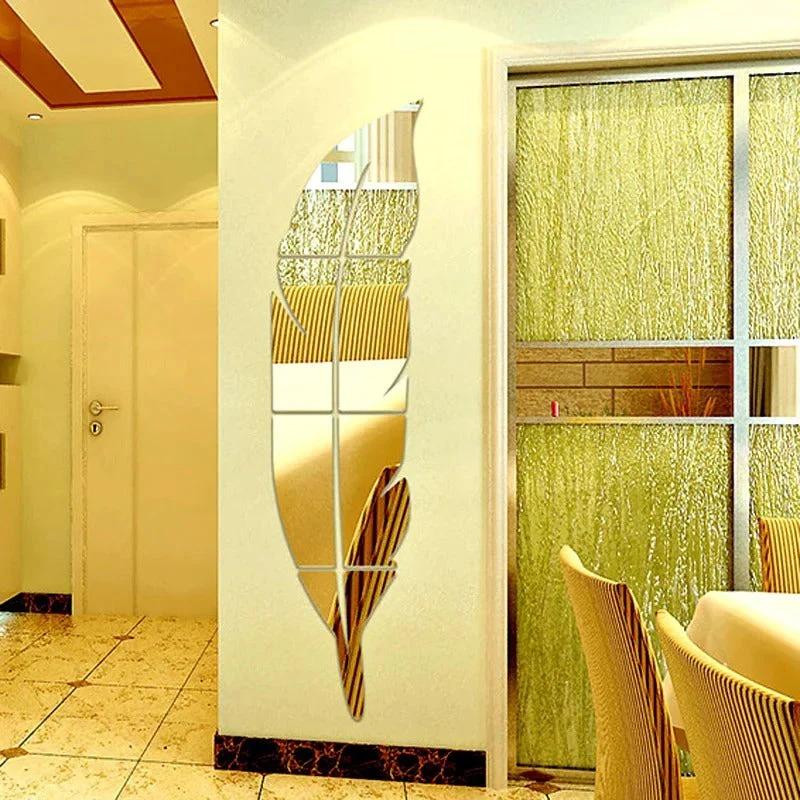 Large Feather Plume 3D Mirror Wall Sticker For Living Room