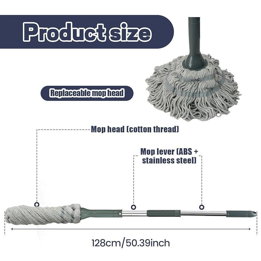 Self Wringing Mop for Floor Cleaning Wet Mop with 50 Inch Long Handle Highly Absorbent Cotton Thread Floor Mop with 2 Reusable Heads for Floor Cleaning for Cleaning Hardwood Tile Marble